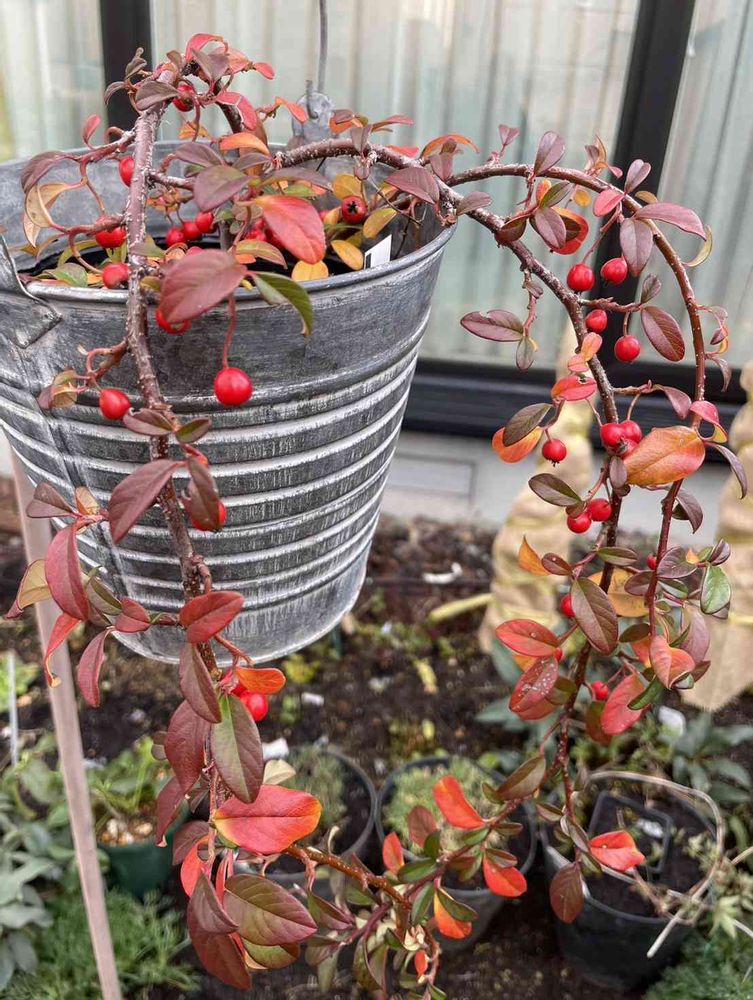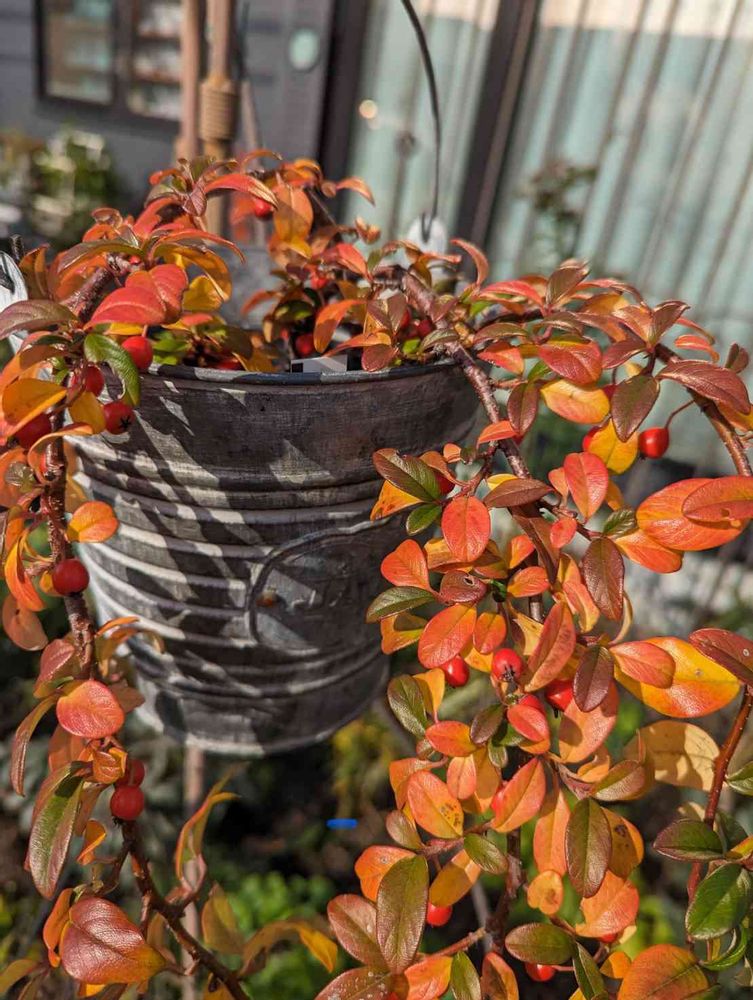 コトネアスターっていうんですね。紅葉して綺麗な色ですね🩷鉢の色とマッチして素敵です💓