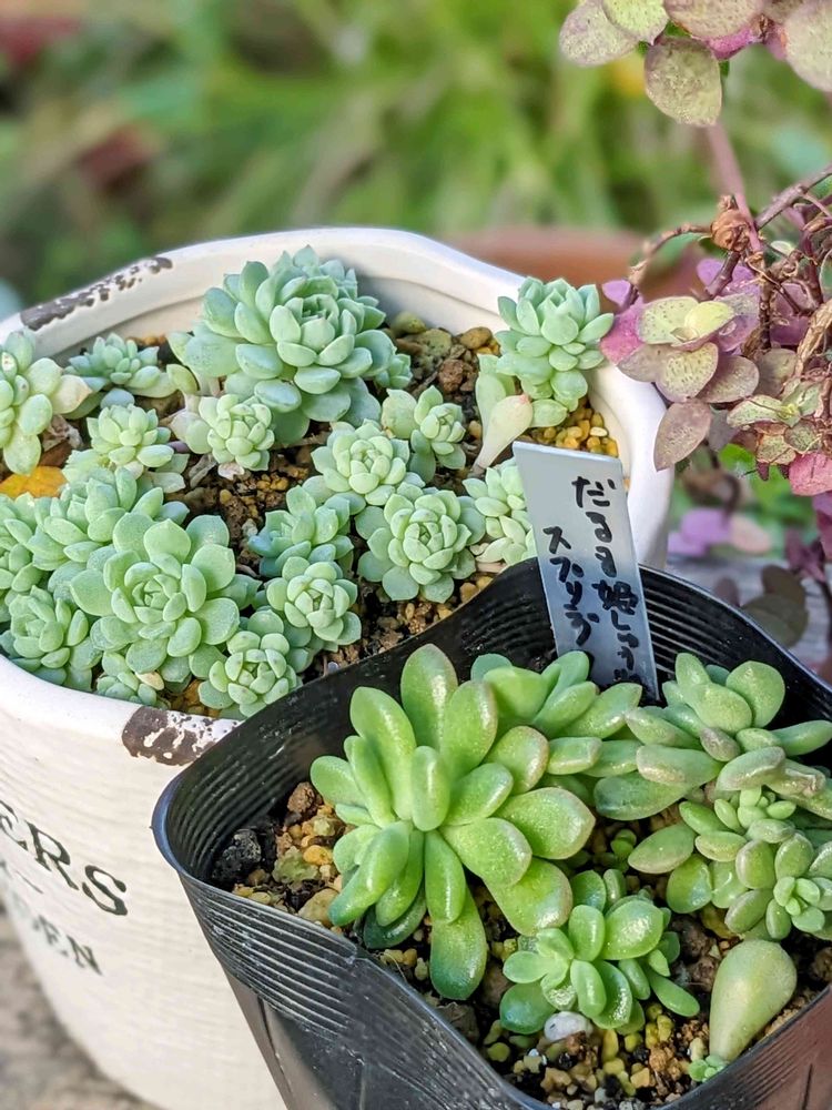 ピンクローサ 葉挿し成功率高いですよね❣️だるま姫秀麗×スプリングワンダーもキレイな若々しい緑色💕この前お迎えしたのはちょっとくすんだグリーンでスプリングワンダーが強めなのかな?と思っちゃいます(˶ᐢᗜᐢ˶)これからの紅葉が楽しみですね〜