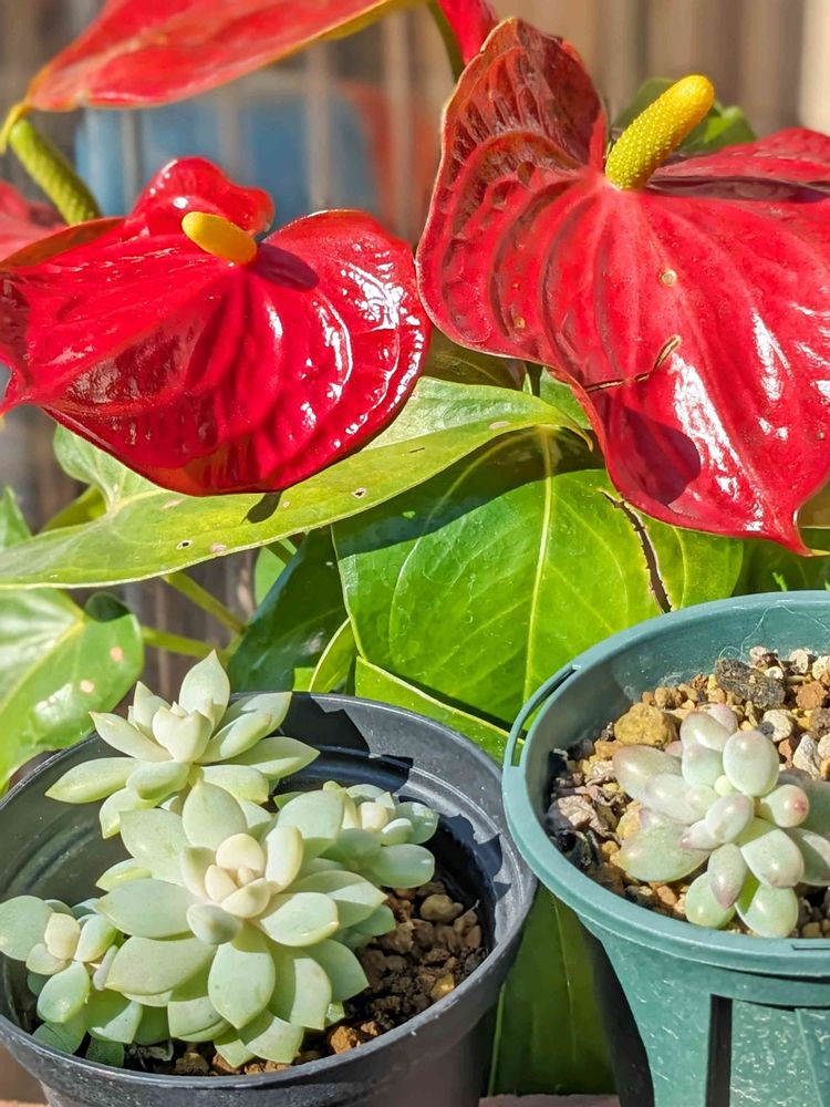 赤いのはアンスリウムっていうんだね〜知らなかったよ😳
