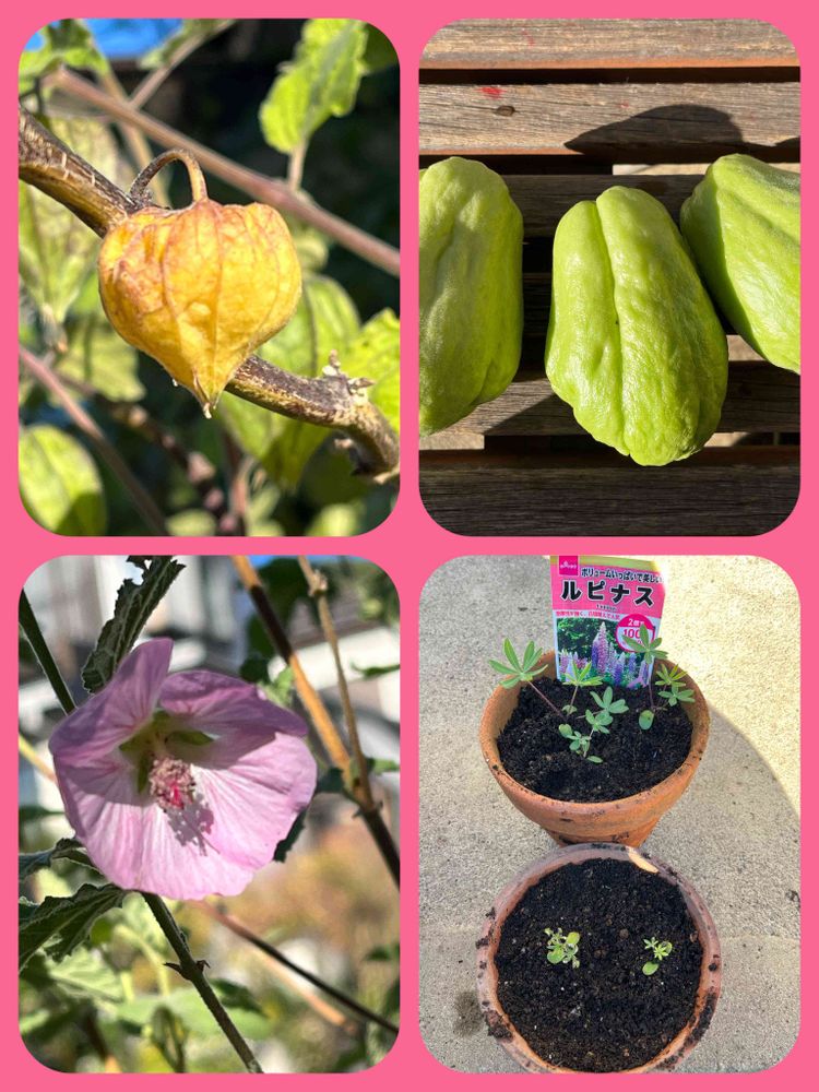 おはようございます。晴れ、13.3℃、10:40肌寒い。オキナワスズメウリ、215日目、今年はたくさん実りましたので、恒例のリースを作りました、来年に向け、種採りしておきます。食用ホオヅキ、黄色く熟した実を発見、小さいけど甘酸っぱかつた。ハヤトウリ3個収穫、累計16個。アニソドンテア、また1輪咲きました、ぱ〜ぁと一度に咲かないものなのかなぁ〜。ルピナス、49日目、鉢に苗植えしました。😍😻🥰😸☺️😋