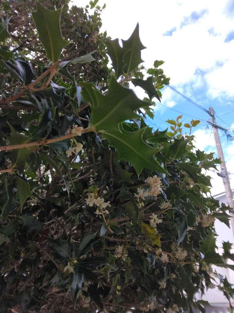 11/14のヒイラギ木犀の様子、トゲトゲだけど11月に咲く白い花が可愛い