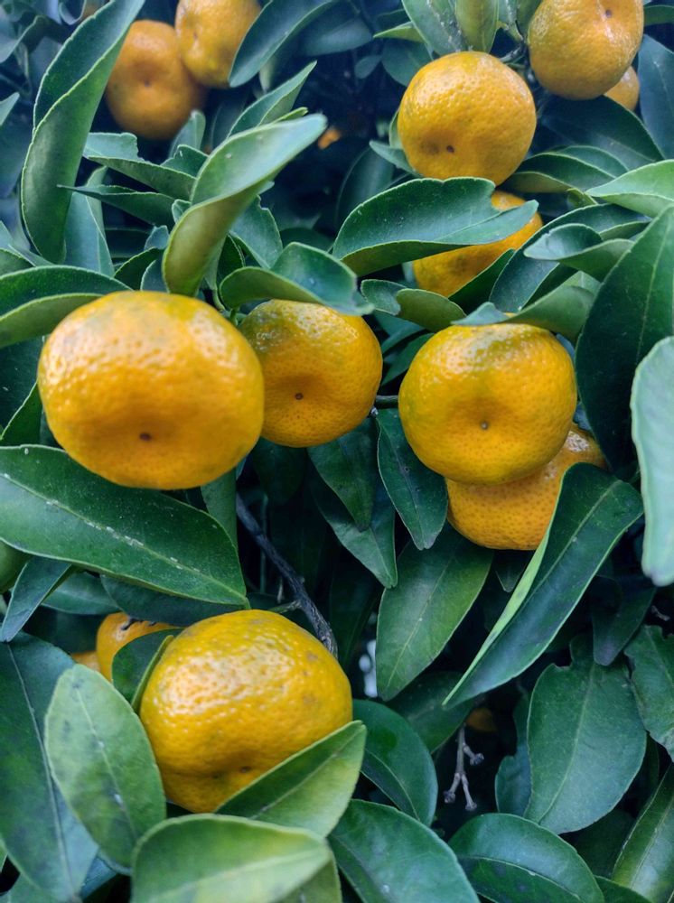 可愛い白いお花が一輪🌸朝日に向いて咲いてました🥰他の子は下向きがち🙂寒いからねぇ😣④⑤は、定点観測の橘です🫒立派にみかんの風貌ですが、直径3センチ位の可愛い実です🍊