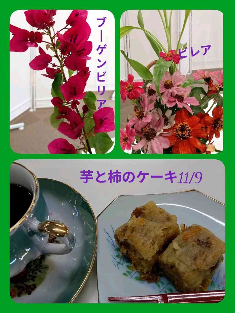 この日のお花は他の曜日の利用者さんが持ってこられた「ブーゲンビリアとビレア」です。🌹🌿🏵🌿