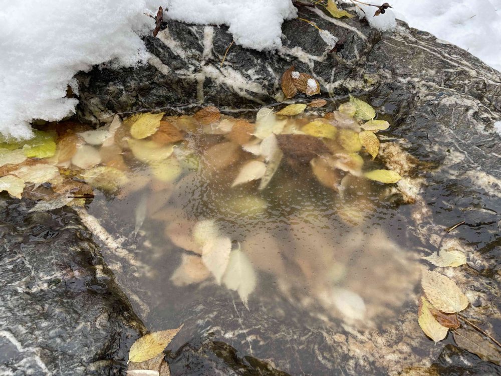 庭のシロヤマブキの葉が氷漬けに🧊🧊😍🥰
