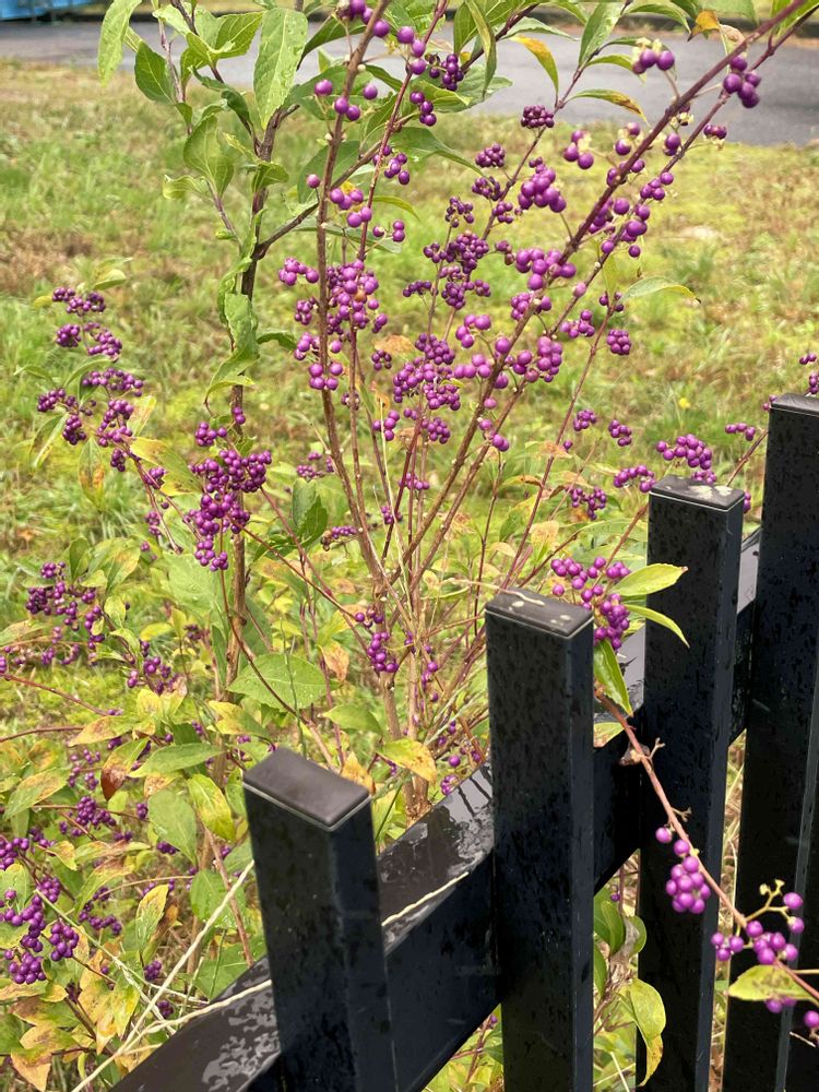 葉っぱは大分黄色くなり、落ちていますが、紫🟣の実は元気そうです😄
