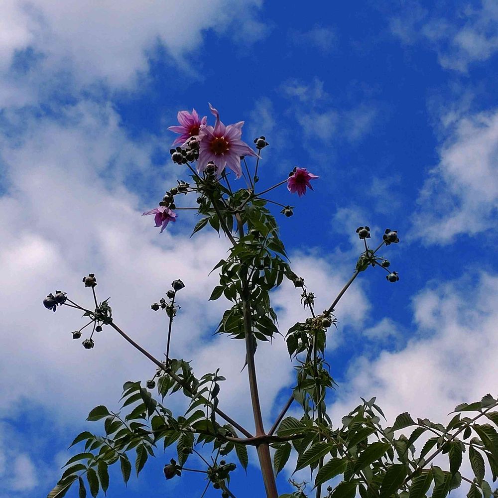 大空に向かって咲く皇帝ダリア🩷