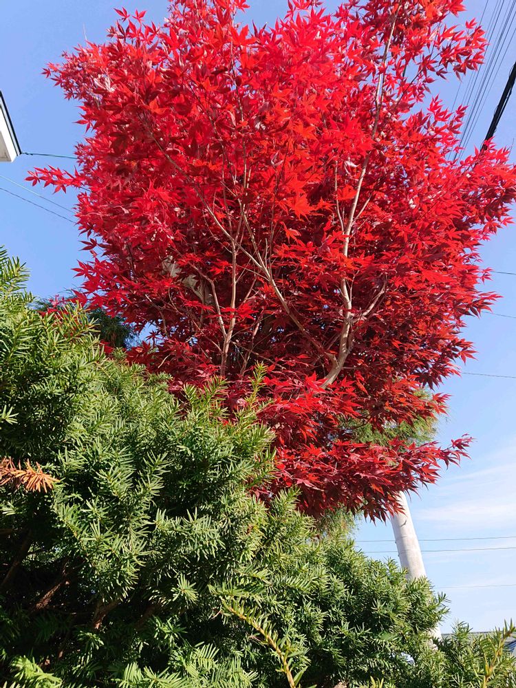 もみじ🍁は綺麗だけど、散った葉の掃除🧹が・・・しかも大木。 ご苦労様(^。^)