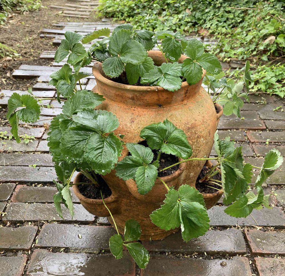 去年、いちご農家の友人に分けてもらった、3株からの子ども苗たち☘️