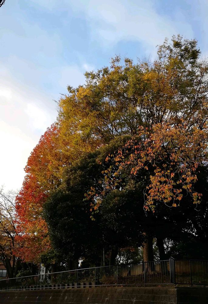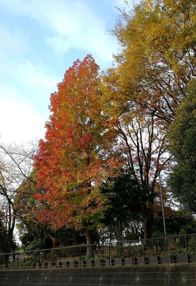 公園のモミジバフウの木が綺麗に紅葉🍁しました🤗