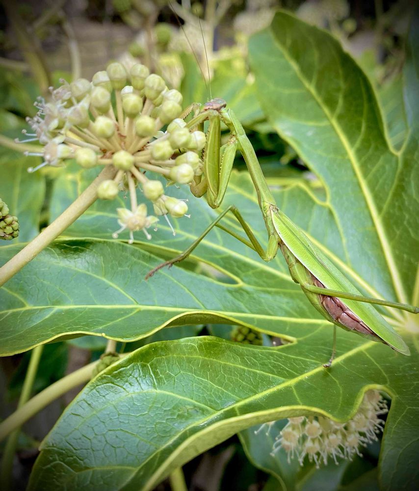 寒い中、カマキリやハチなどの虫たちが花に集まっていたので驚きました😆