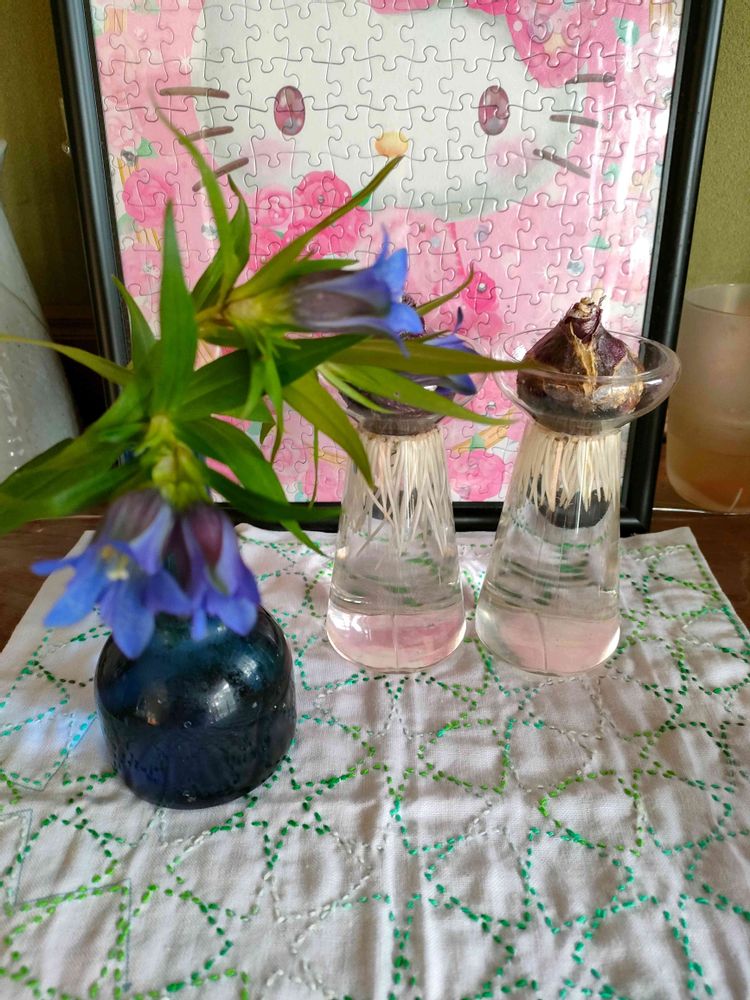 ヒアシンスの水栽培の根っこも、投稿出来ない日も、あったので、だいぶ伸びて来ました。🥰