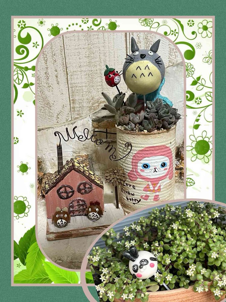 ぷりまみチャンの可愛いリメ缶の寄せ植えに何やら大きなトトロピック‼️