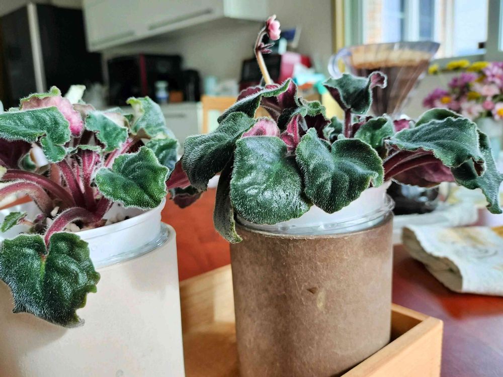 根腐れ気味セントポーリア アナンダさん、今朝も腐敗ガスを流水で洗い流し。右の子は全部の茎がしっかり持ち上がったのでほぼ復活完了です。株元のみ土増しして、水槽用のバクテリア剤、HB-101、腐植系の活力剤を入れておきました。