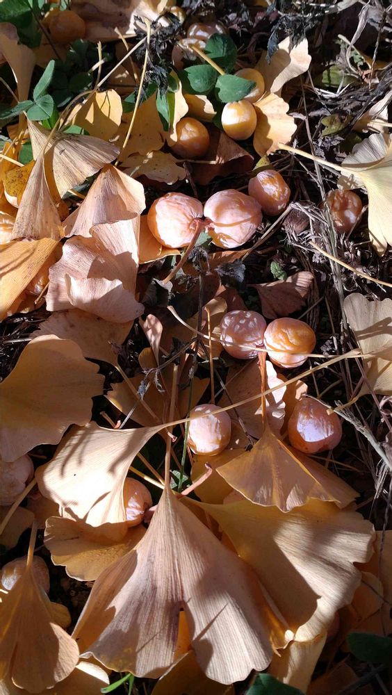 てくてく🙆足元🍂銀杏の実が 沢山落ちていて