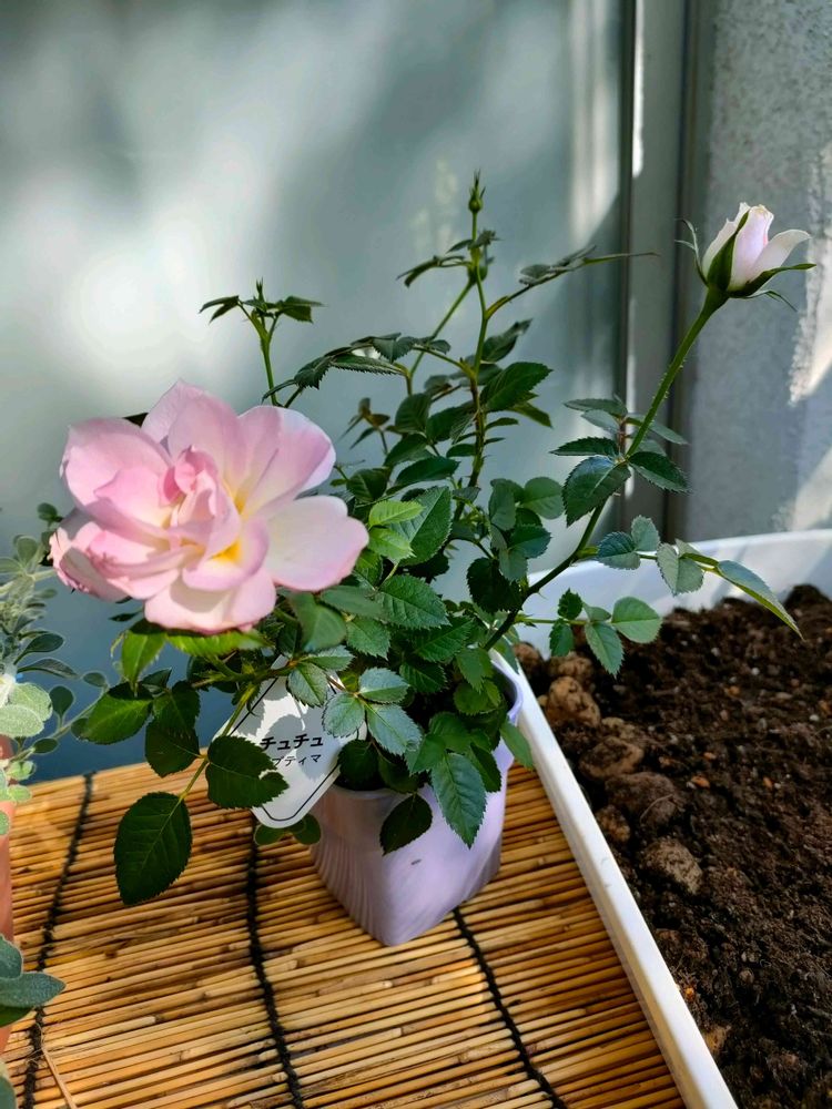 買うつもりはないのに、お花屋さんをのぞきあーでもないこーでもないと考えて、沢山買うことはできないけどミニ薔薇なら一鉢でサマになるじゃない?と結論づけました。