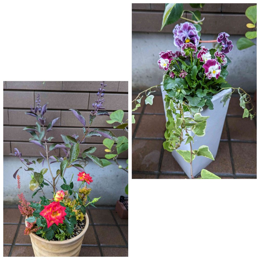 最近衝動的に買ってしまった苗達をとりあえず寄せ植えしてみた。