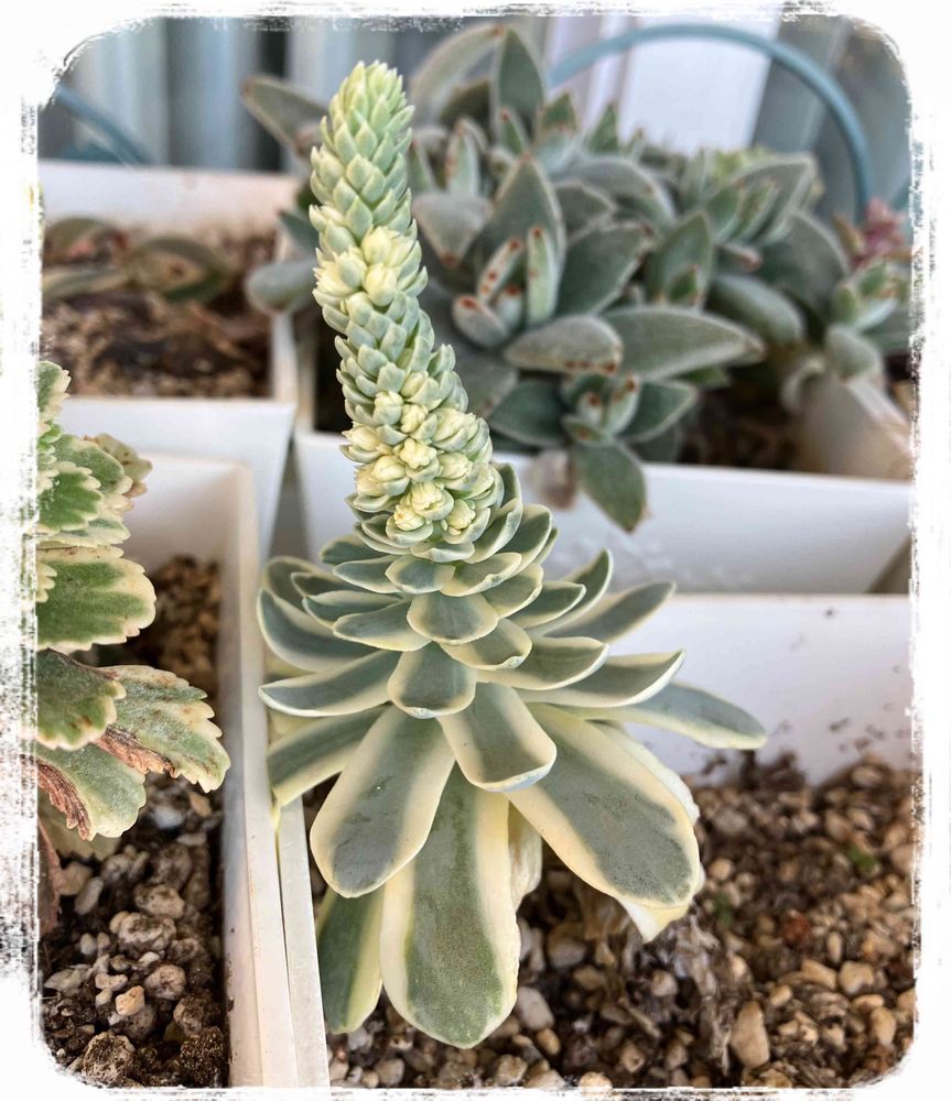 多肉植物の富士が初めて花芽を付けたので、様子を見ていました🪴🌼