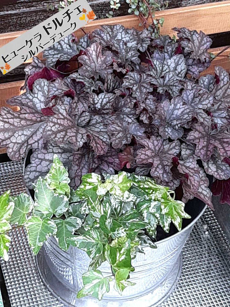 こんなモリモリヒューケラさん🌿他では観ないよ。ヘデラさんの模様も個性的で~思わずお迎えしちゃった( *´艸)