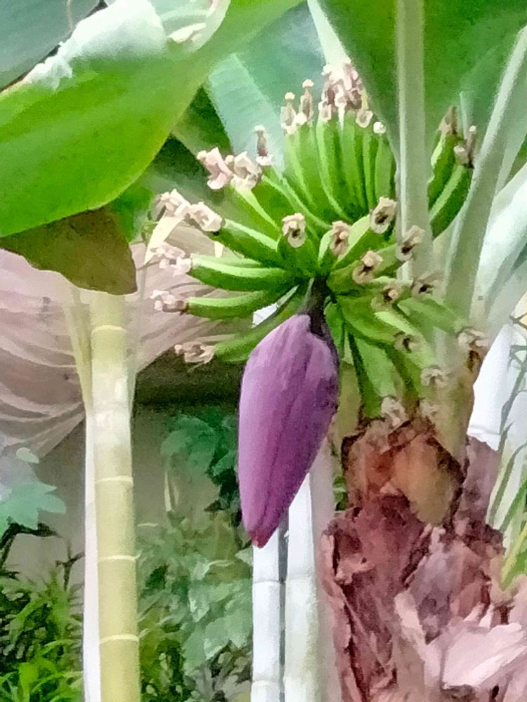みどりのセンターでバナナが成ってました。これから冬なので成るか心配してました。