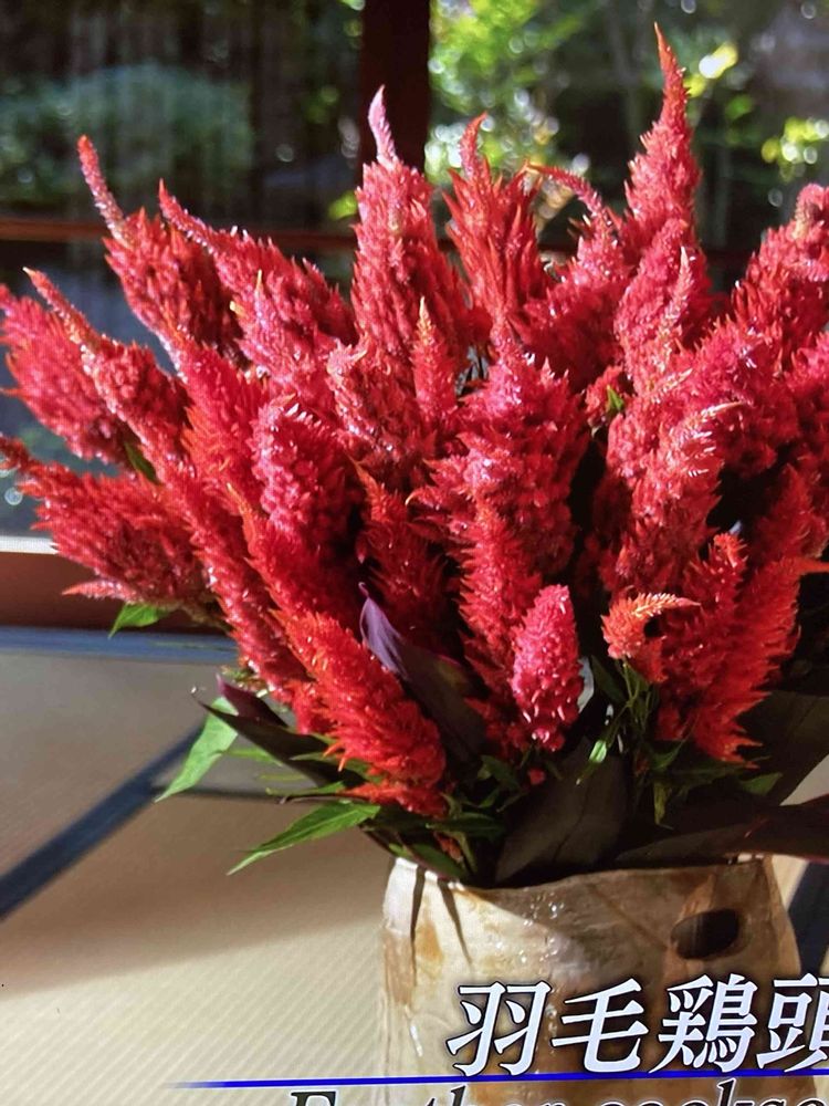 今週のオープニングを飾った花は「羽毛鶏頭」だった。
