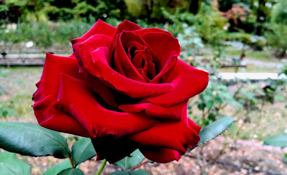黒っぽい赤のビロードみたいなすてきなバラが咲いていました。