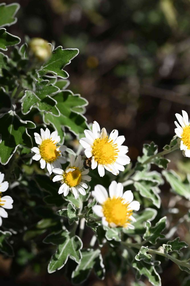 直径3-5cmの花(頭状花序)をつけ、白色の舌状花と黄色の筒状花を持ちます。