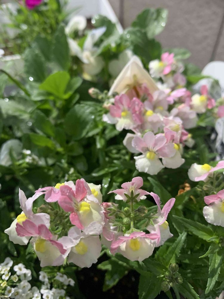 植え付ける時に少し落ちてしまったネメシアの花が咲いてきました。