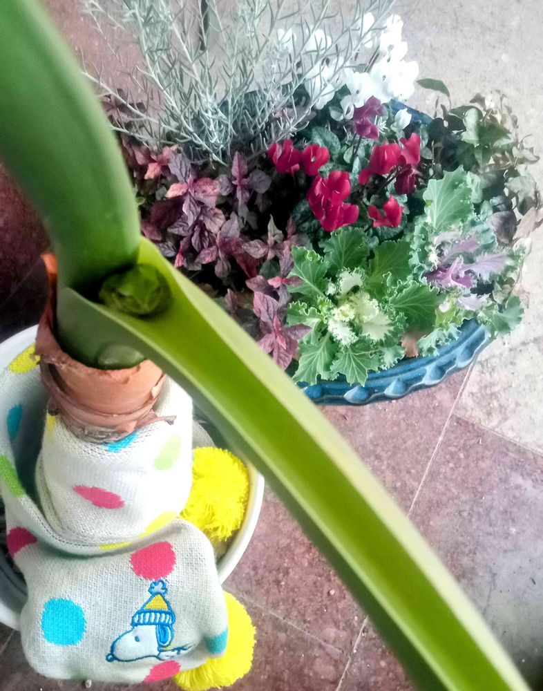 さん🐸🍠🧣✨もう、このまま玄関内に連れて入ろうかな😅💦💦寒さよりも突風で、クワマンの植木鉢が心配なんよね〜😱😱😱困ったちゃんです🤔🌀