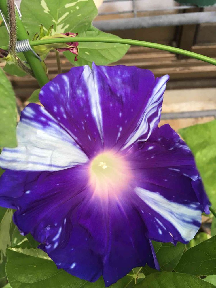 素敵な濃い紫に絞り入りの朝顔ですネ❣️