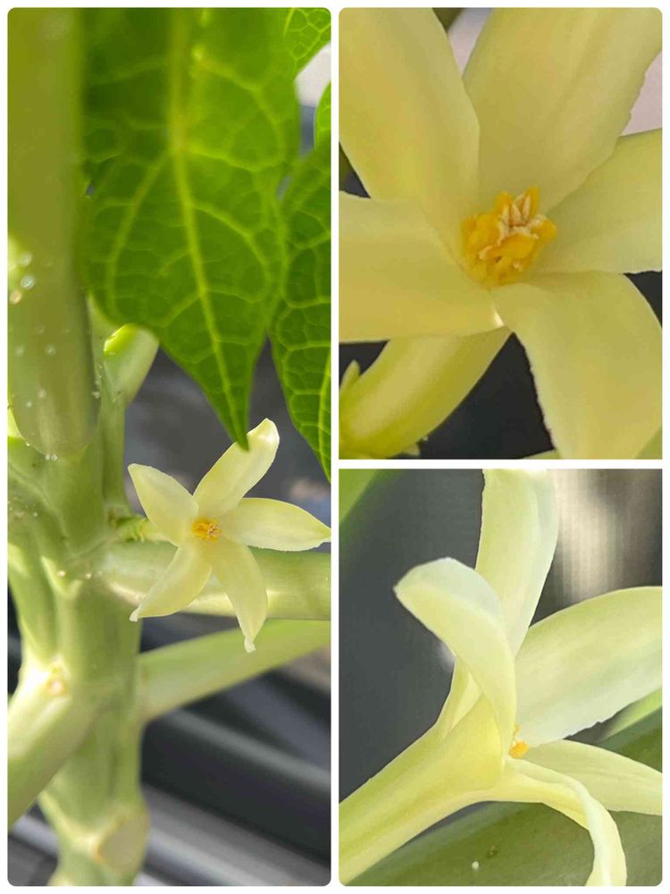 4月か5月頃に八百屋さんでパパイヤのポット苗が100円で売っていたので、ついつい2ポット買ってしまい、鉢に植え替え観葉植物🪴として見て来ました花の蕾は👀見るのですが,枯れて落ちてばかりでした。