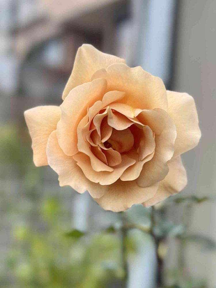 これはHTのジュリアです。鉢植えにしていて、秋口にやや深めの鉢に変えましたが伸び伸びで…つるじゃないはずですが😅
