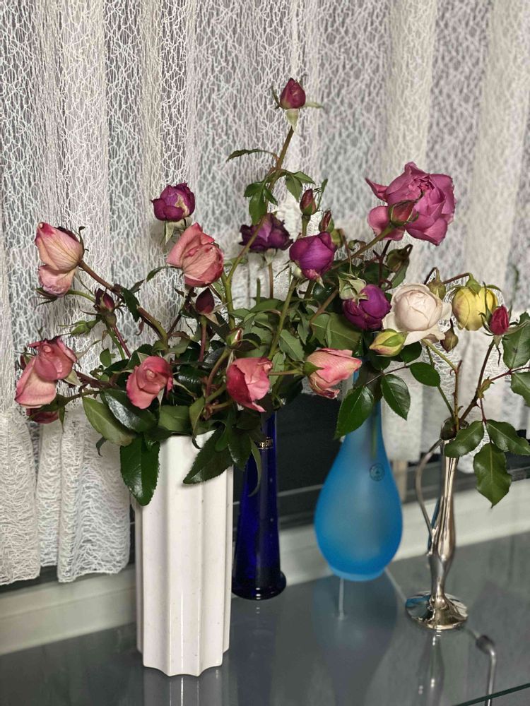 お庭のバラさん達カットしてもらってきれいに生けられて、良かったですねー🎶🌹❣️🌹🤗