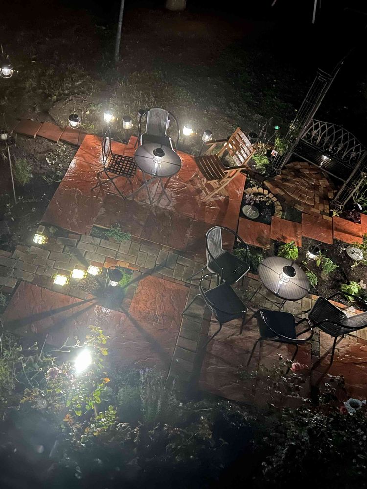 4枚目は バラと宿根草を植えている実家の庭の夜景です🌉(10月)