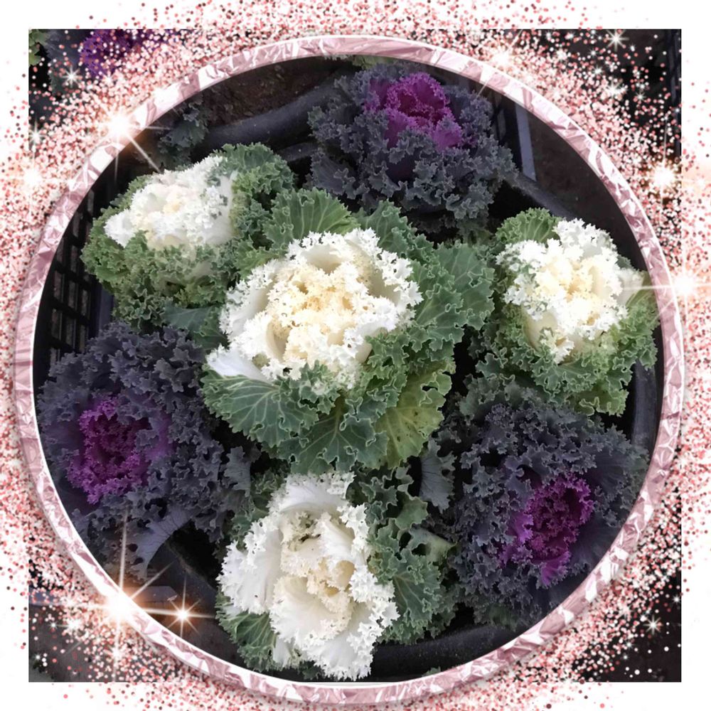 葉ボタンの縮緬赤と白色の寄せ植えを沢山作ってきました😍