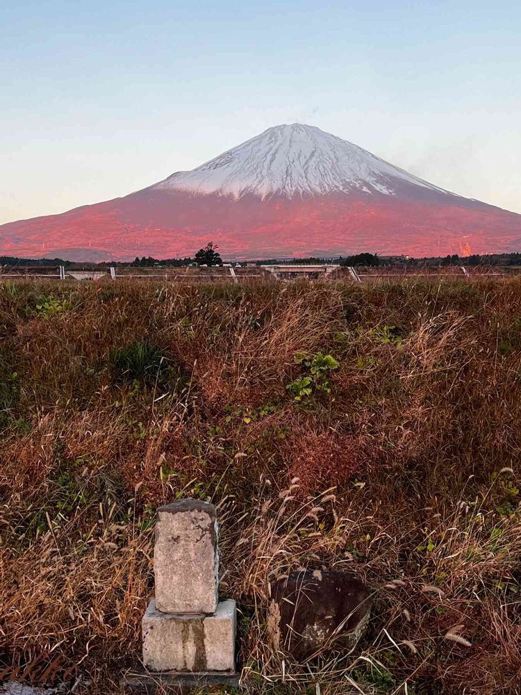 通常早朝の紅富士は山頂付近の雪が積もっている場所が紅色になると想像してたけど⁇