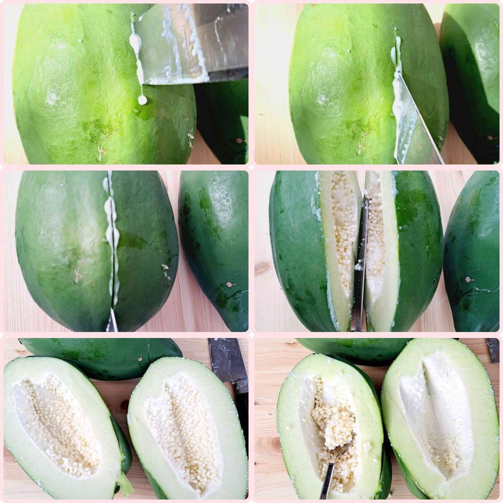 ③パシュン。切ったら出るわでるわ乳液。パパイン酵素と言うみたいで、美容にも凄くいいらしい。