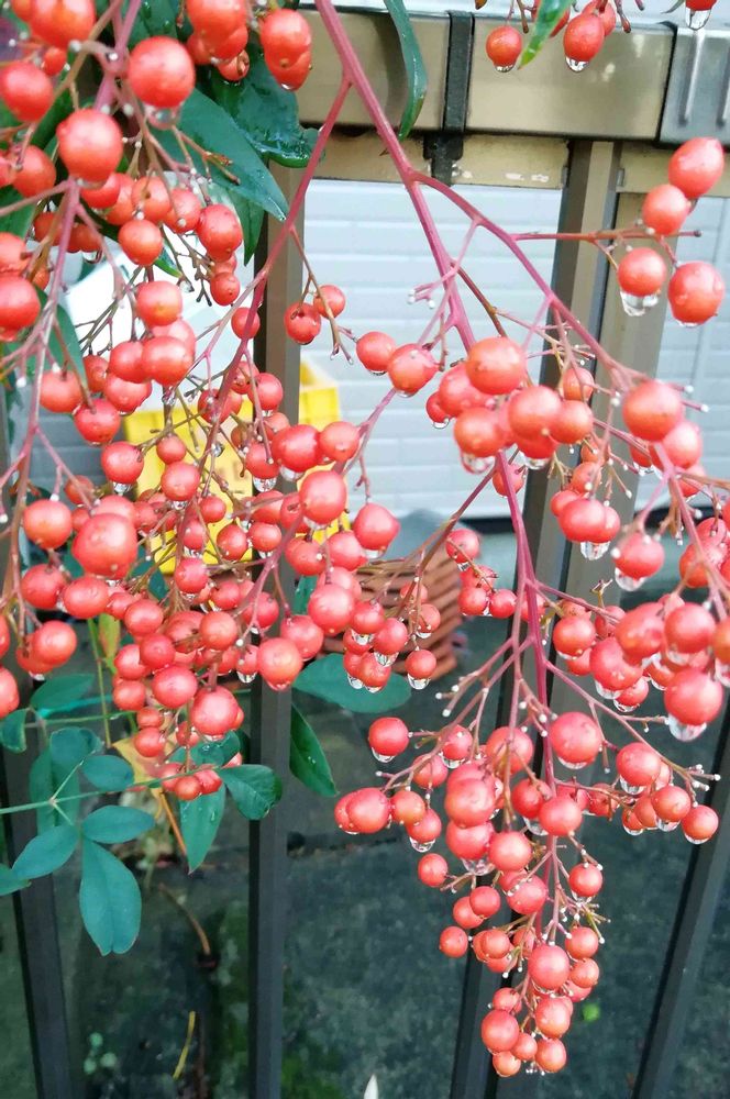 ナンテンの美はしたに垂れたものや上に向かった実が有りますが、葉も料理の飾りに使われたりします☺️