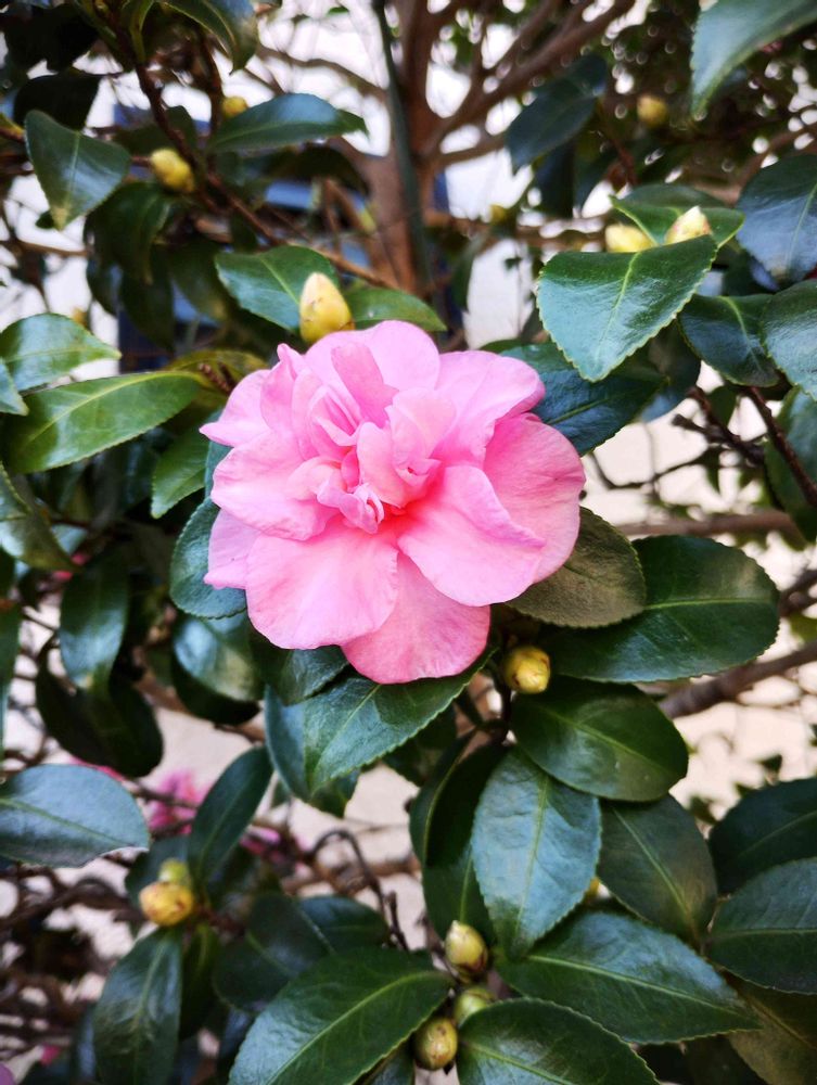 八重咲きの「サザンカ」が綺麗に咲いていました。パチリ