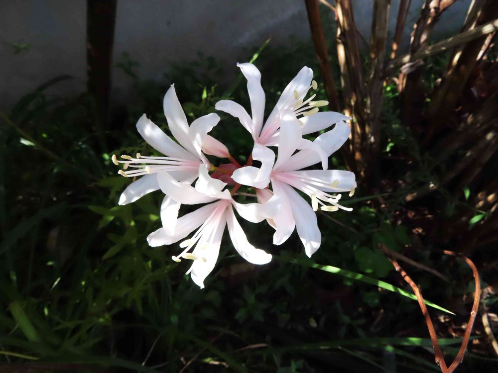 木陰に咲いていた「ネリネ・サルニエンシス」、木漏れ日で可愛くなっていました。パチリ