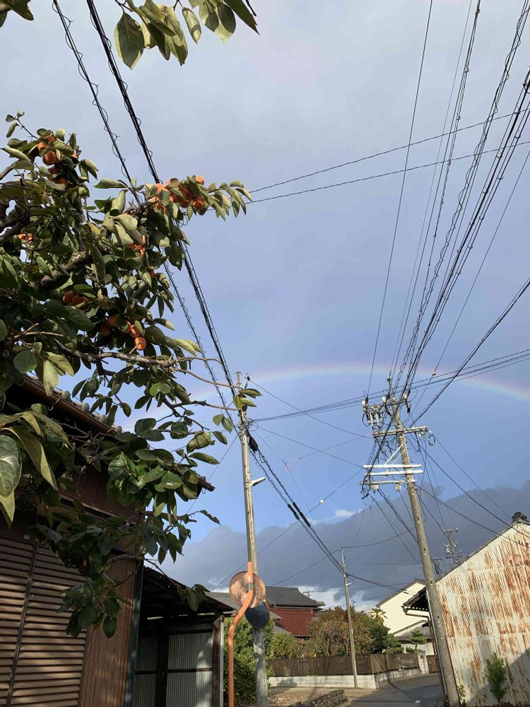 はい!😊昨日、変な天気だったからもしやと太陽☀️の反対側見たら虹🌈ででました。