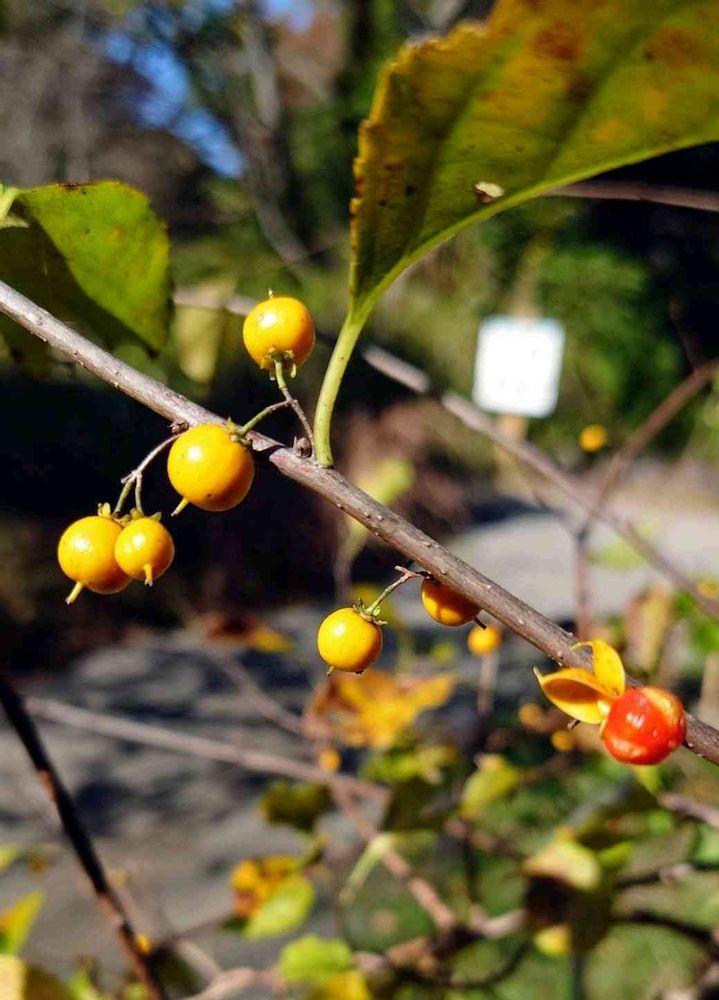 黄色いツルウメモドキの実が弾けて赤い実が顔を出しました🟡🔴🌿