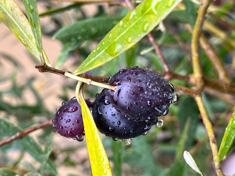 塩漬けの実には未熟な緑色、オリーブオイルには黒紫色に完熟した実を使うようですネ!😚