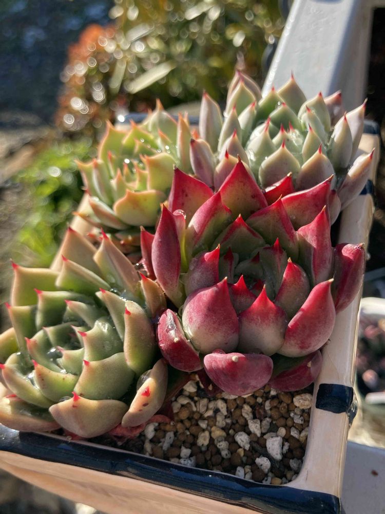 昨日の一時的な猛吹雪で、軒下にいた多肉達が真っ白になってましたが、今朝の日射しで溶けてきてました👍