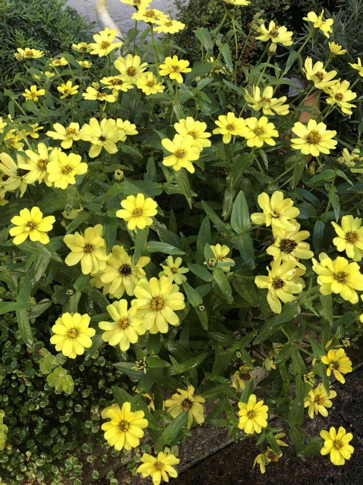 夏ごろ花屋さんで売れ残っていた¥100位の可愛い鉢を花壇に植えたらいつの間にこんなに増えました🌼