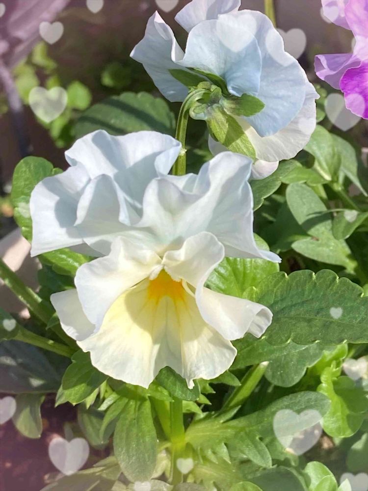 何とも言えない淡い色合いが大好きなパンジーです🌿🤍💜🤍🌿