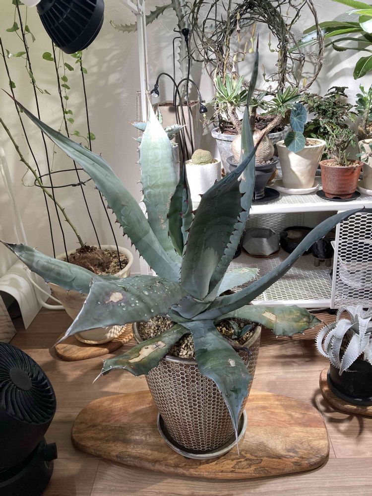 買った時は小さくて青くてうねってて可愛かったんですよ。