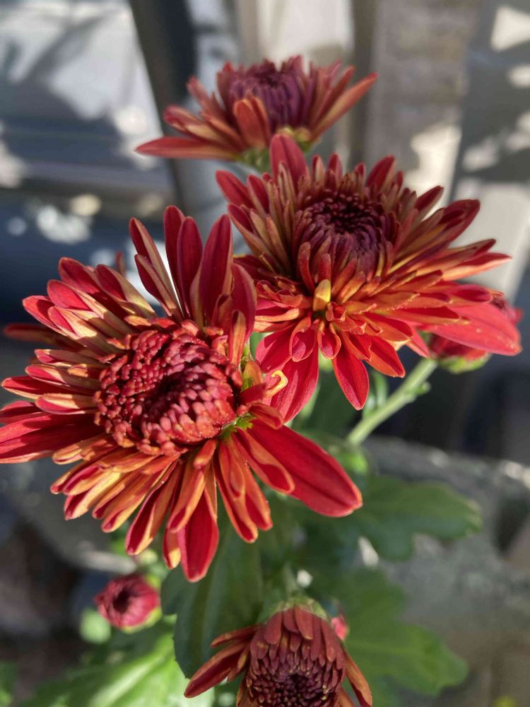 ①初めての菊!仏様用にと3種類植えて見たら思いのほか可愛くて切りたくない…😅