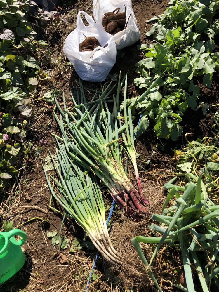長ネギとサツマイモを収穫です。良い天気で作業が捗りました(^-^)