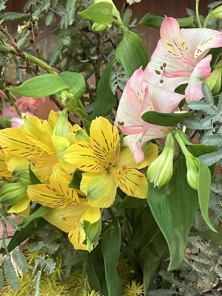 きのうの教会のお花は、子供たちの祝福式だったので、可愛い色のお花でした💐