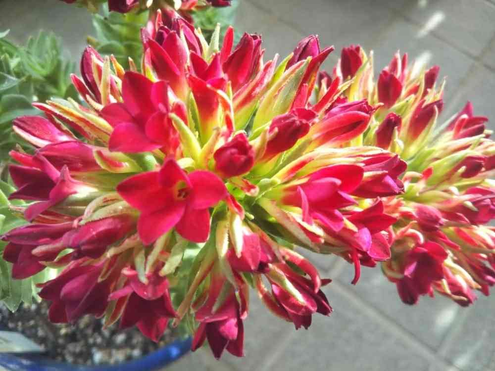 なかなか開きそうもないドス黒いようなこのまま枯れてしまうんじゃなかろうかという鮮やかとは言えない赤色の花ロケア。